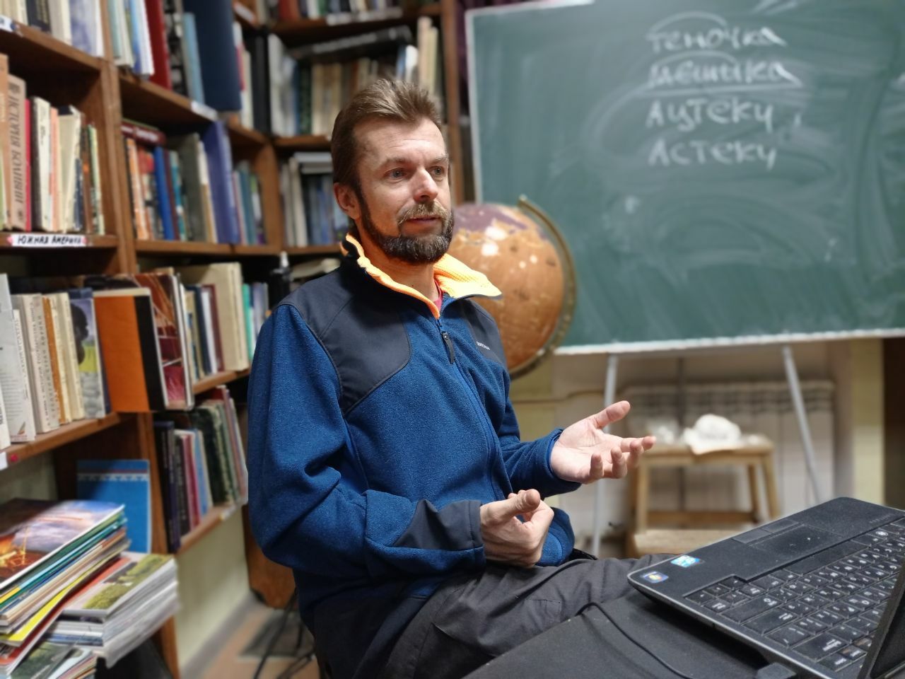 Меня зовут Константин Кукси́н. Я этнограф, путешественник и создатель Музея кочевой культуры. Сегодня я буду вашим гидом, мы совершим увлекательное путешествие по нашему Музею - и по всем обитаемым континентам планеты, где познакомимся с разными народами, по-прежнему ведущими кочевой образ жизни. Вперед!